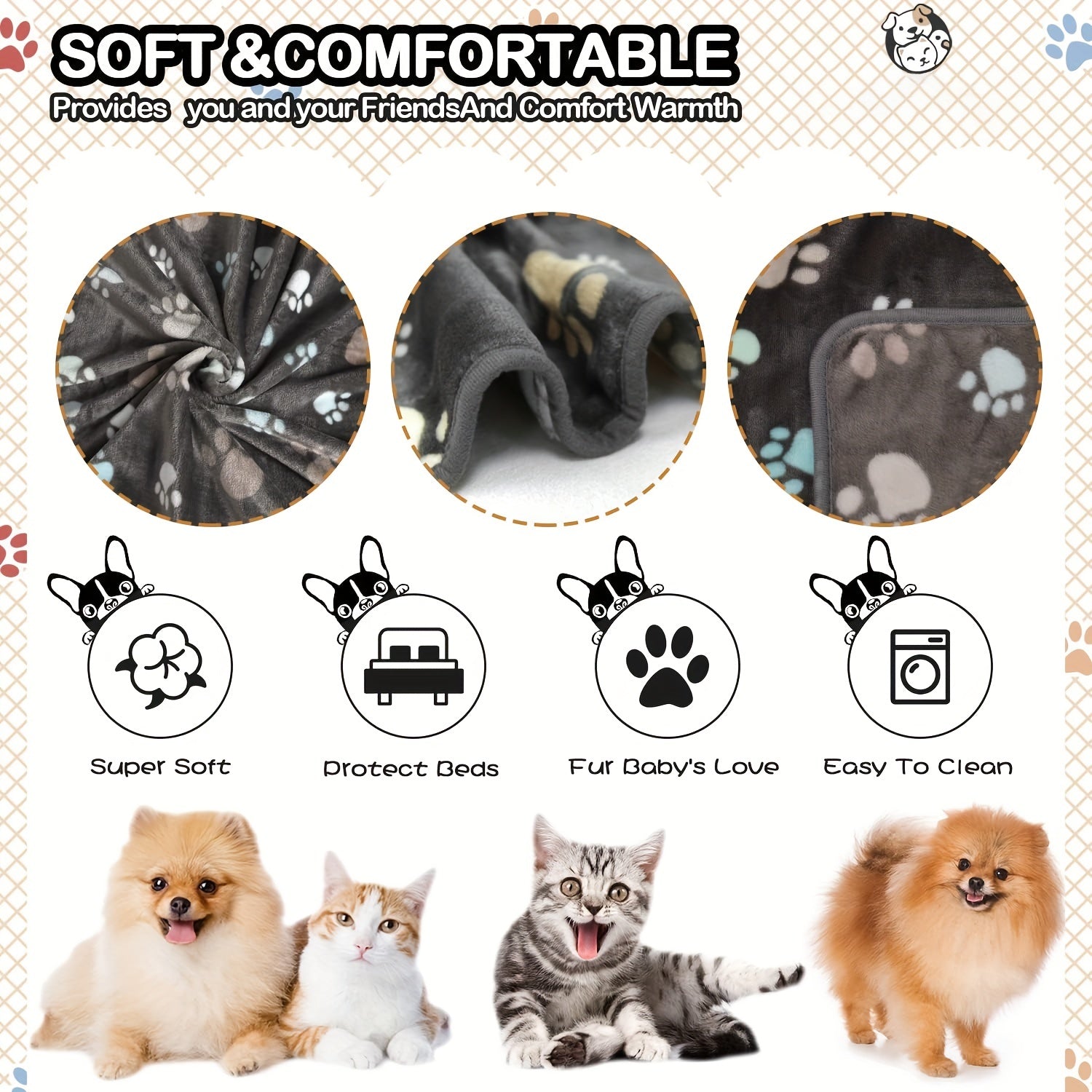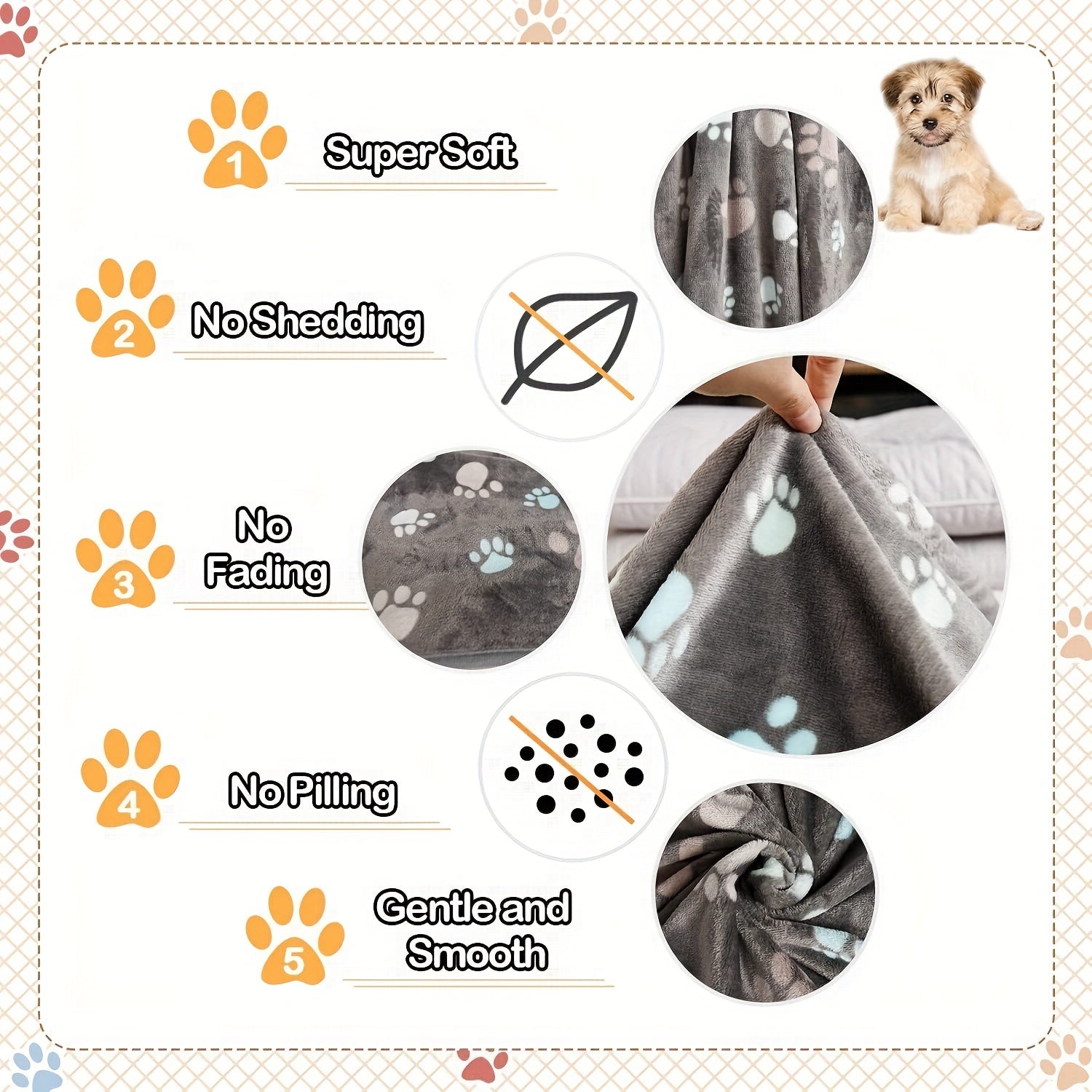 1pc Paw Print Dog Blanket, Washable Flannel Pet Throw Blanket, Soft Pet Mat Cover for Dog Nest Cage Bed, Pet Blanket