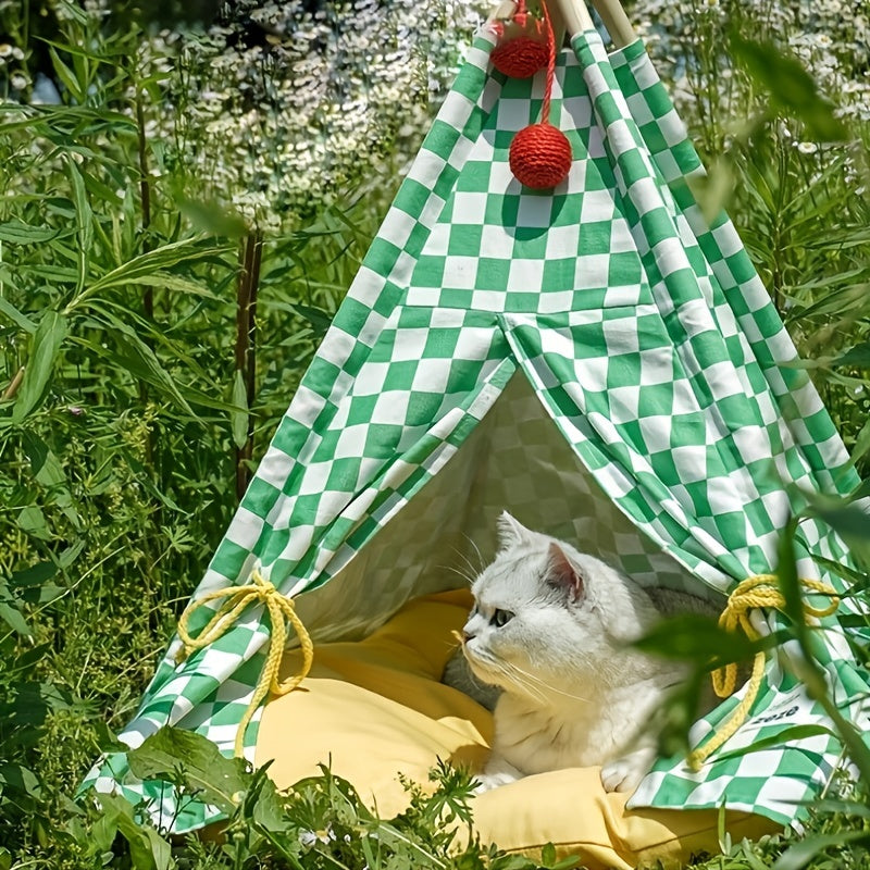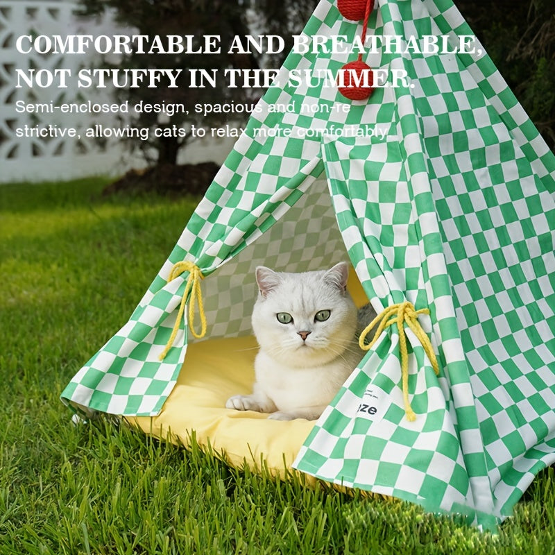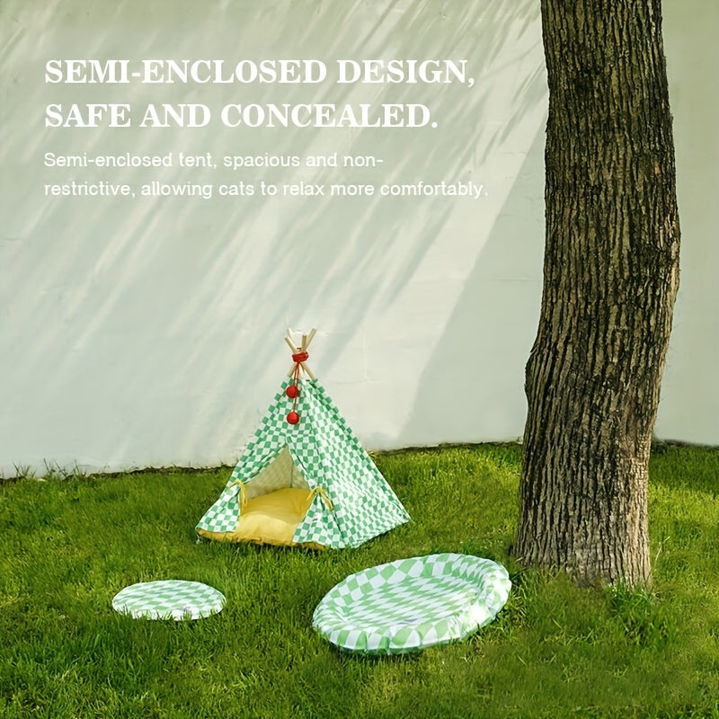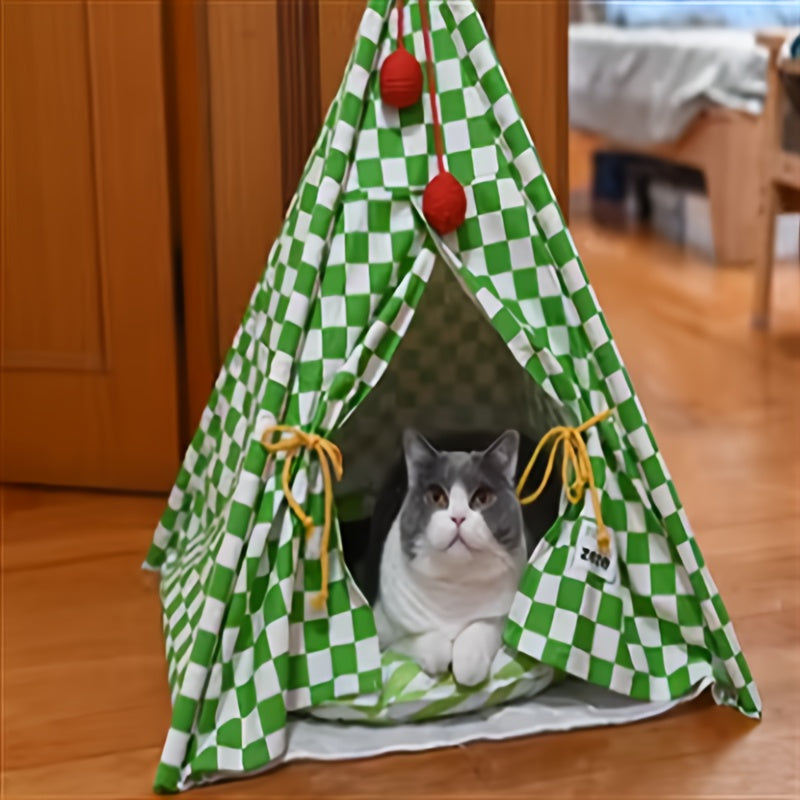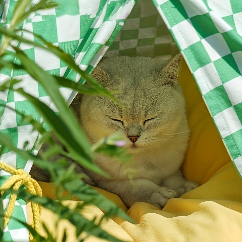 Zeze Cute Pet Tent Pet House Cat Nest Semi-closed Detachable Washable Mat Cat Bed Four Seasons Universal Cat Bed With Checkerboard Pattern