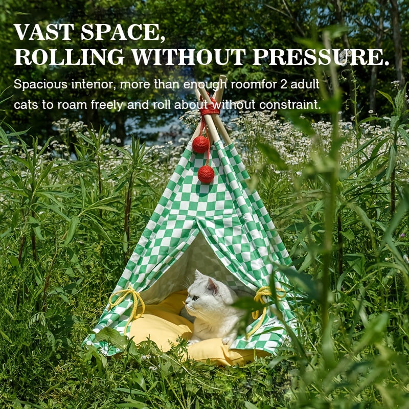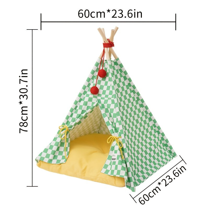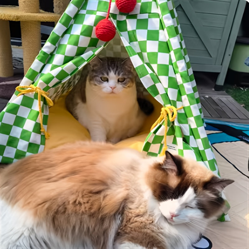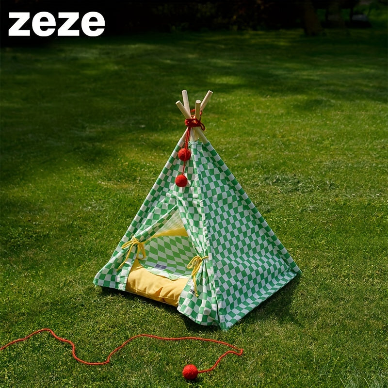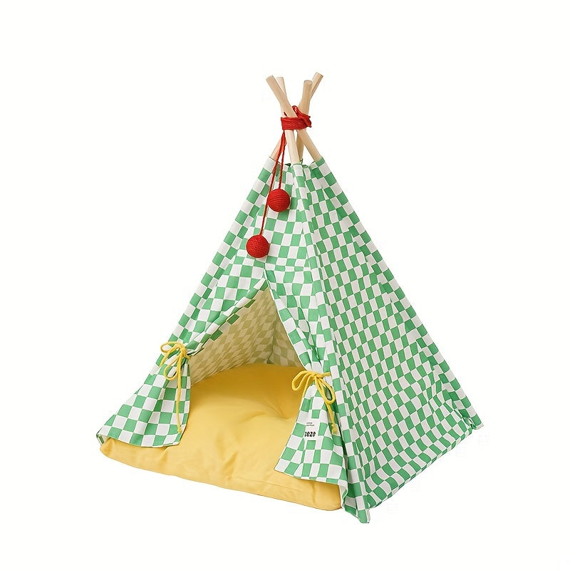 Zeze Cute Pet Tent Pet House Cat Nest Semi-closed Detachable Washable Mat Cat Bed Four Seasons Universal Cat Bed With Checkerboard Pattern